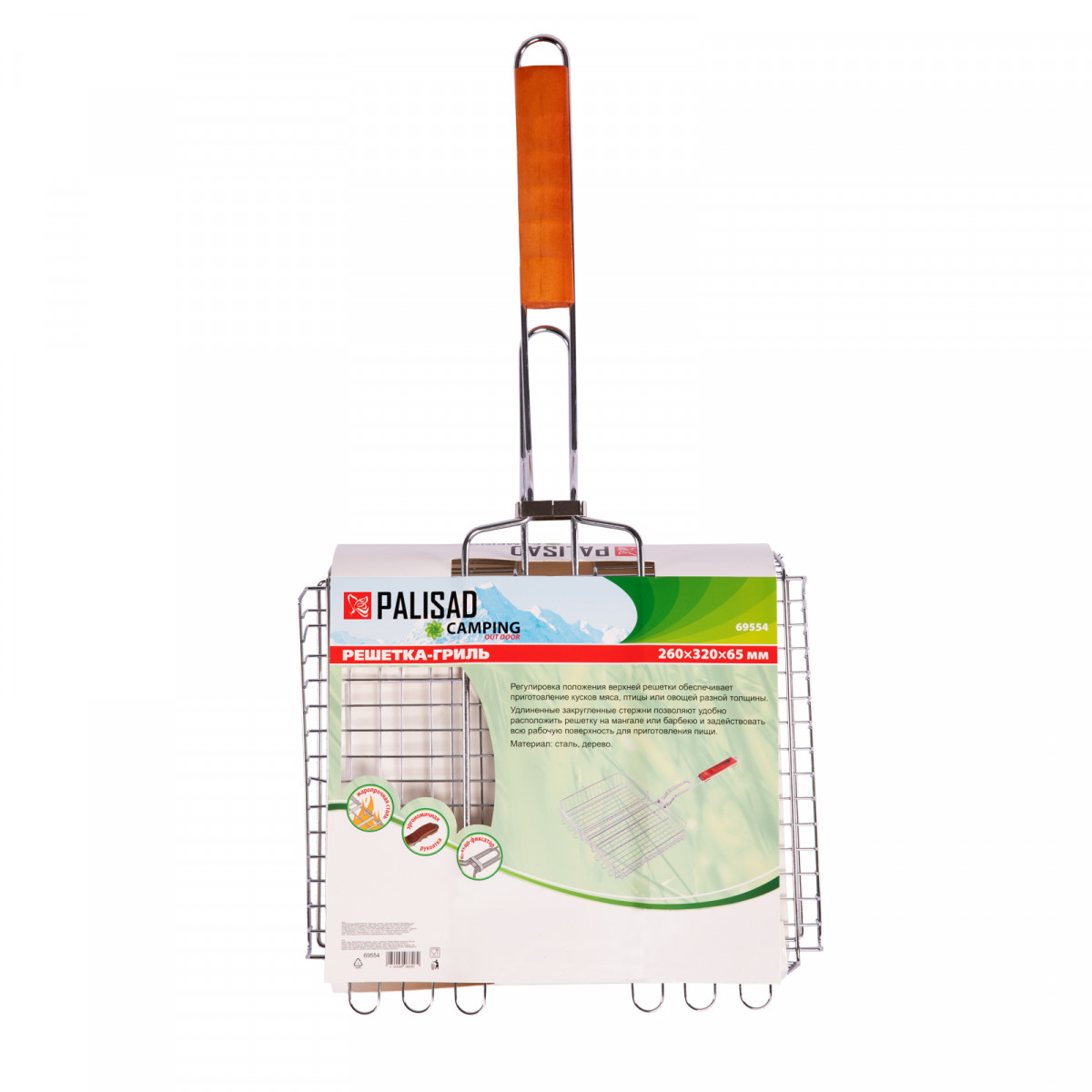 Объемная хромированная решетка гриль Palisad Camping 69554 размером 260 х 320 х 65 мм позволяет легко жарить пищу с двух сторон в мангале. Объемная конструкция решетки с возможностью регулировки высоты позволяет приготовить крупные куски мяса и куриную тушку без потери сочности.