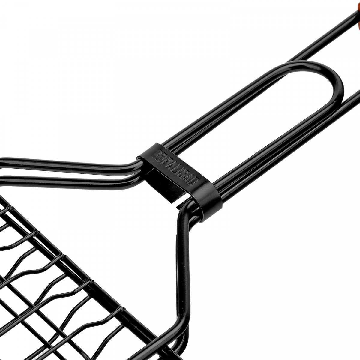 - Толстое кольцо-фиксатор предотвращает случайное раскрытие решетки и обеспечивает безопасное переворачивание блюд.