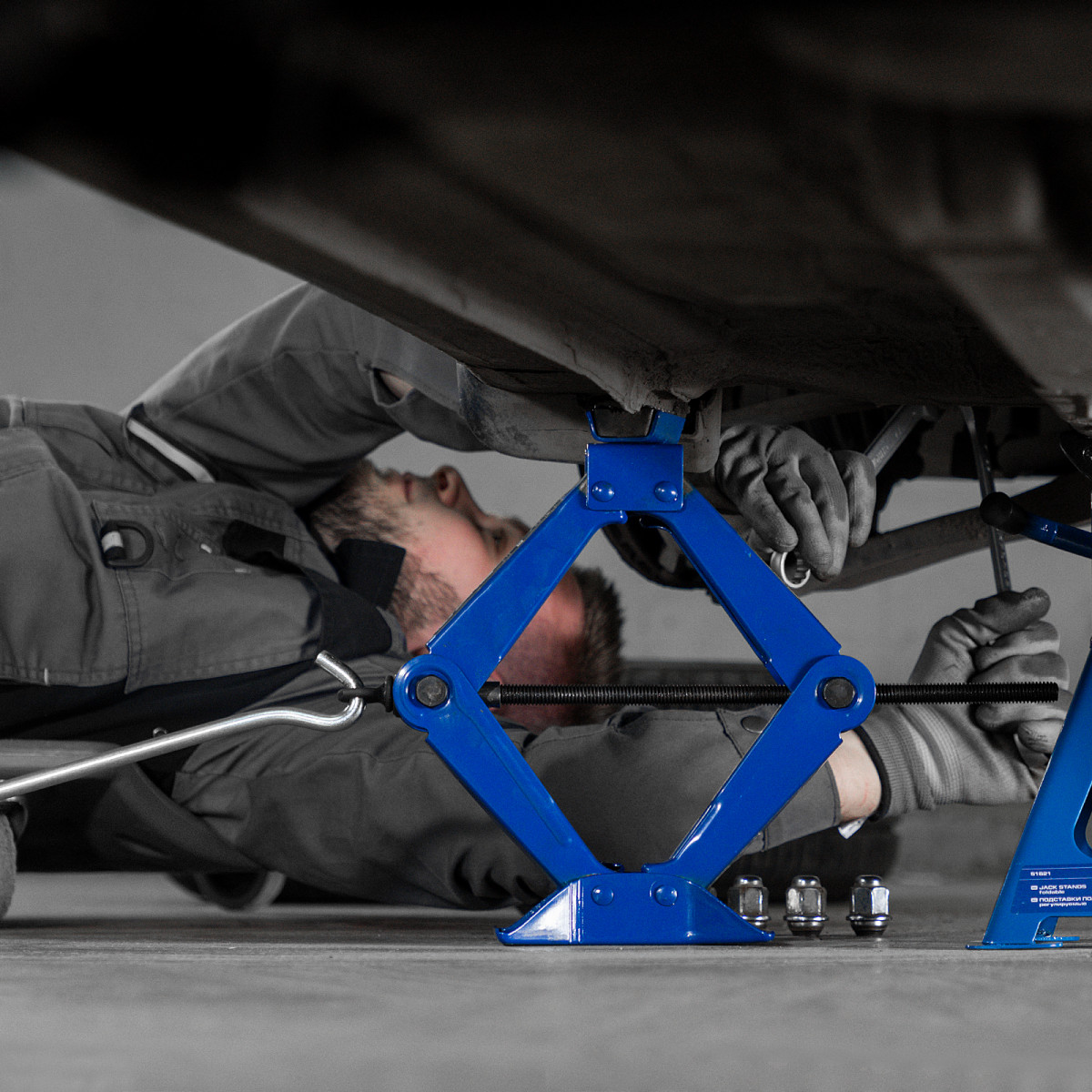 - Защита от непредвиденного опускания груза — трапецеидальная резьба на винте обладает функцией самоторможения.