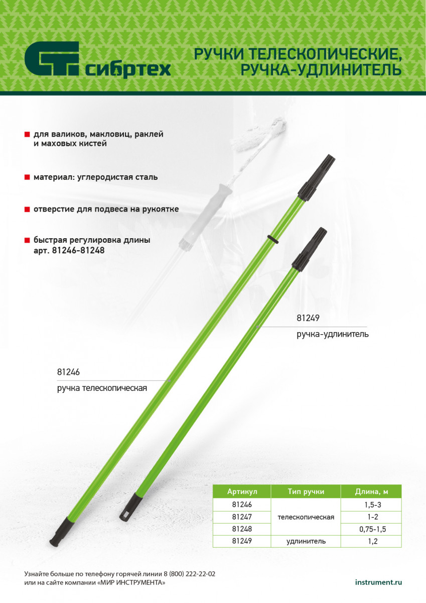 Ручка телескопическая металлическая, 1,5-3 м Сибртех