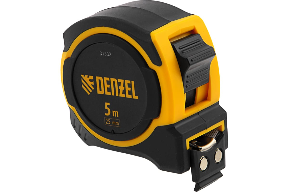 Рулетка 5 м*25мм двухкомпонентный корпус магнитный обрезиненный зацеп Denzel