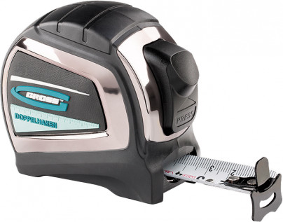 Рулетка Gross DoppelHaken 8 м x 25 мм 31125 - сочетание ABS-пластика и термопластичной резины, которое позволяет сохранить работоспособность при резких изменениях температуры, а также при падении с высоты до 1,5 м. Измерительное полотно с двухсторонним зацепом имеет дополнительное покрытие нейлоном, защищающее металлическое полотно от истирания и воздействия окружающей среды. Возвратная пружина из углеродистой стали обладает необходимой упругостью и долговечностью. Рулетка имеет автоматическую фиксацию измерительного полотна, что обеспечивает дополнительное удобство в работе.