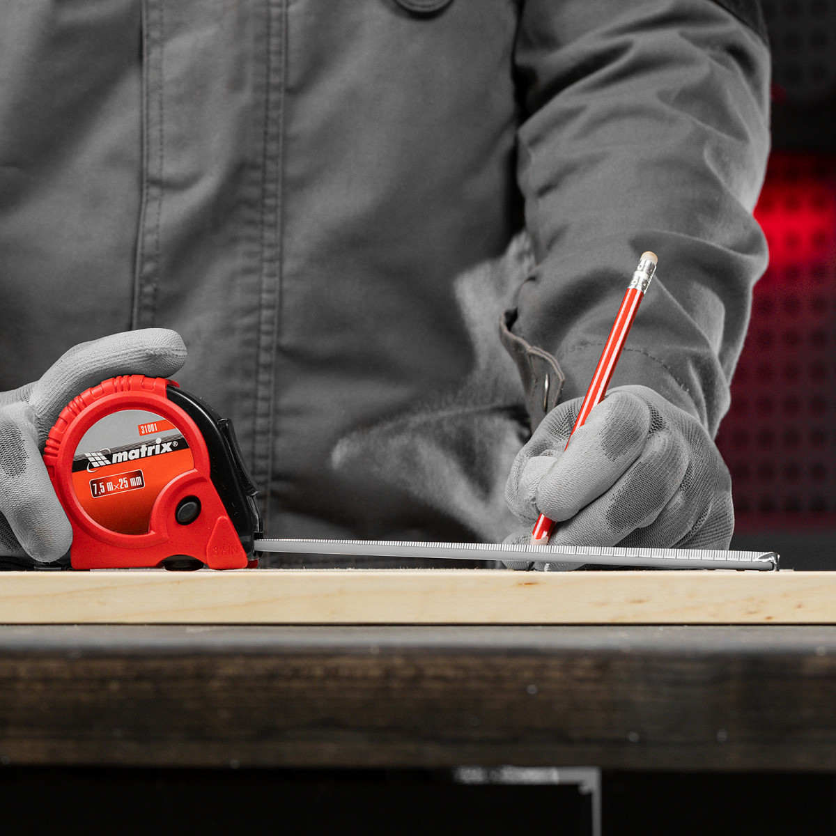 Рулетка Rubber,7,5 м х 25 мм,обрезиненный корпус Matrix