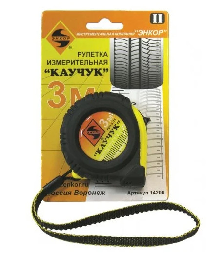 Рулетка строительная 3м ЭНКОР Каучук РФ3-3-16