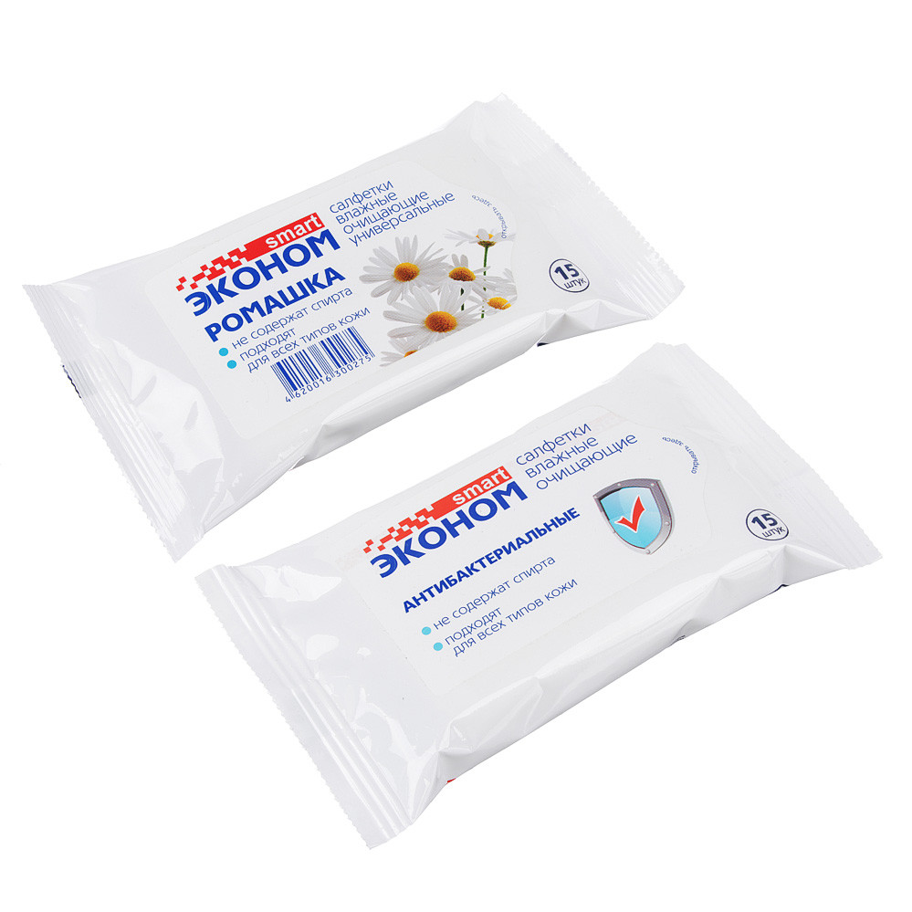 Влажные салфетки СМАРТ незаменимое средство гигиены в поездке или дома, которые обеспечат трепетный уход, тщательное очищение и смягчение, не нанося вред самой нежной коже. В упаковке 15 штук.