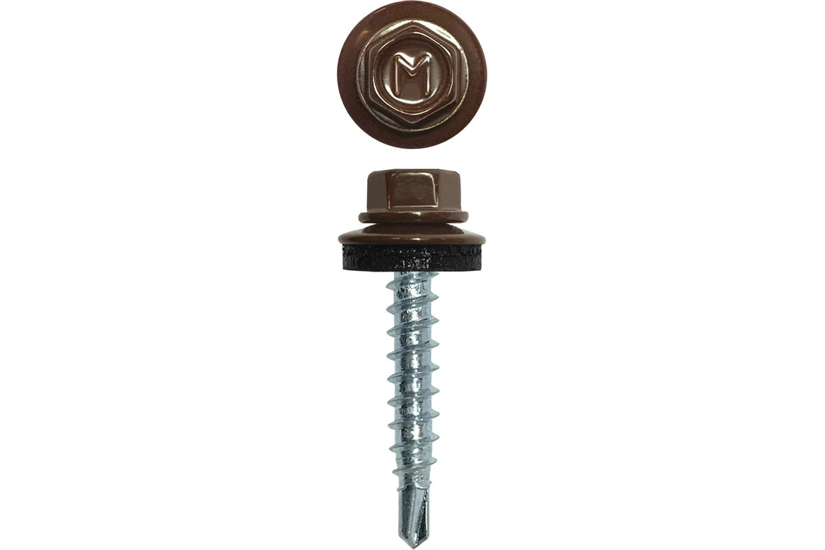 Саморез 4,8*29 сверло,гол.шестигр.с шайбой, RAL 8017 (Шоколадно-коричневый) Pront