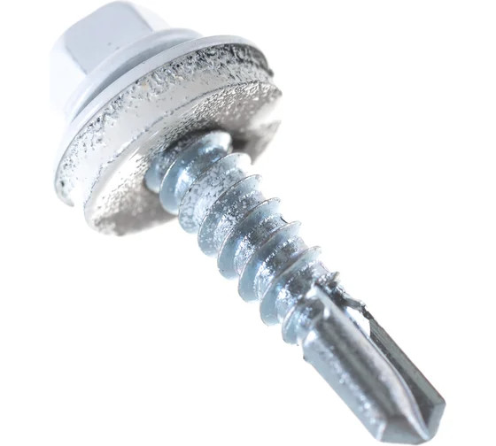Используется при монтаже профнастила и металлочерепицы к конструкциям из металла или древесины. Имеет шестигранную головку с шайбой и прокладку EPDM из синтетического каучука.