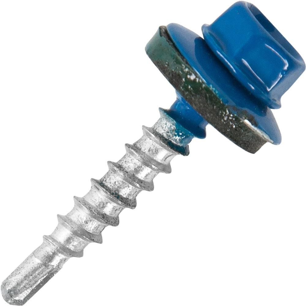 Саморез 4,8*76 сверло,гол.шестигр.с шайбой, RAL 5002 (синий) Pront