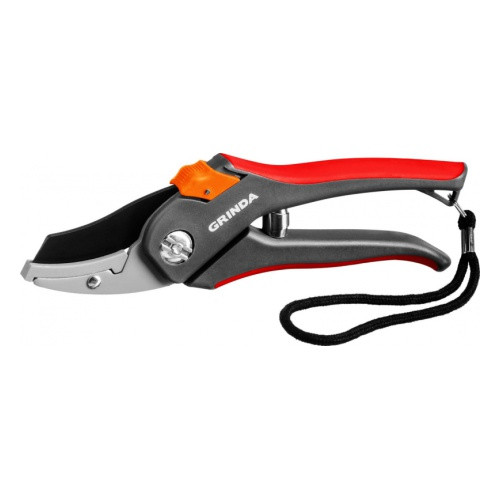 Все секаторы GRINDA являются прочными, долговечными и удобными изделиями, обеспечивая комфортный и лёгкий рез. Они выполнены из высококачественных материалов гарантирующих долгий срок эксплуатации. Тефлоновое покрытие защищает лезвие от воздействия окружающей среды и увеличивает срок службы секатора. Двухкомпонентные рукоятки с резиновыми накладками гарантируют удобный хват. Ремешок обеспечивает удобство при переноске и использовании секатора.