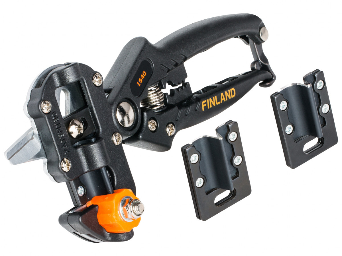 Прививочный секатор со сменными лезвиями Центроинструмент FINLAND 1540 упрощает процесс прививания. Инструмент обладает небольшими размерами. Благодаря особой форме лезвий обеспечивается максимальное прилегание веток после прививки. Рукоятки инструмента выполнены из нейлона и фибергласа.