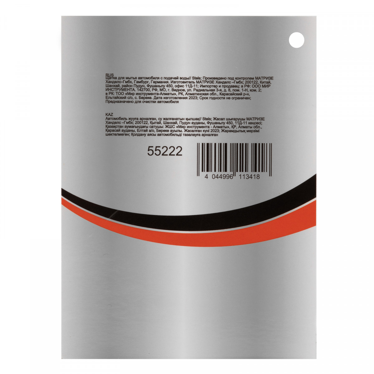 Щетка Stels 55222 с возможностью подачи воды используется для мытья автомобиля. Имеет штуцер размером 1" для подключения водопроводного шланга. Щетина из прочного полипропилена устойчива к истиранию, поэтому щетка прослужит долго. Изделие пригодится автомобилистам.