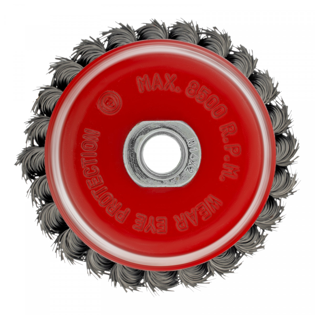 Щетка Matrix «Чашка» 74628 диаметром 100 мм, с присоединительной резьбой М14, с щетиной из крученой проволоки диаметром 0,5 мм, устанавливается на УШМ, поддерживающую работу со скоростью 8500 об/мин. Изделие предназначено для грубой (черновой) обработки поверхностей и подходит для удаления загрязнений, снятия толстого слоя ржавчины, ЛКМ, зачистки сварных швов.
