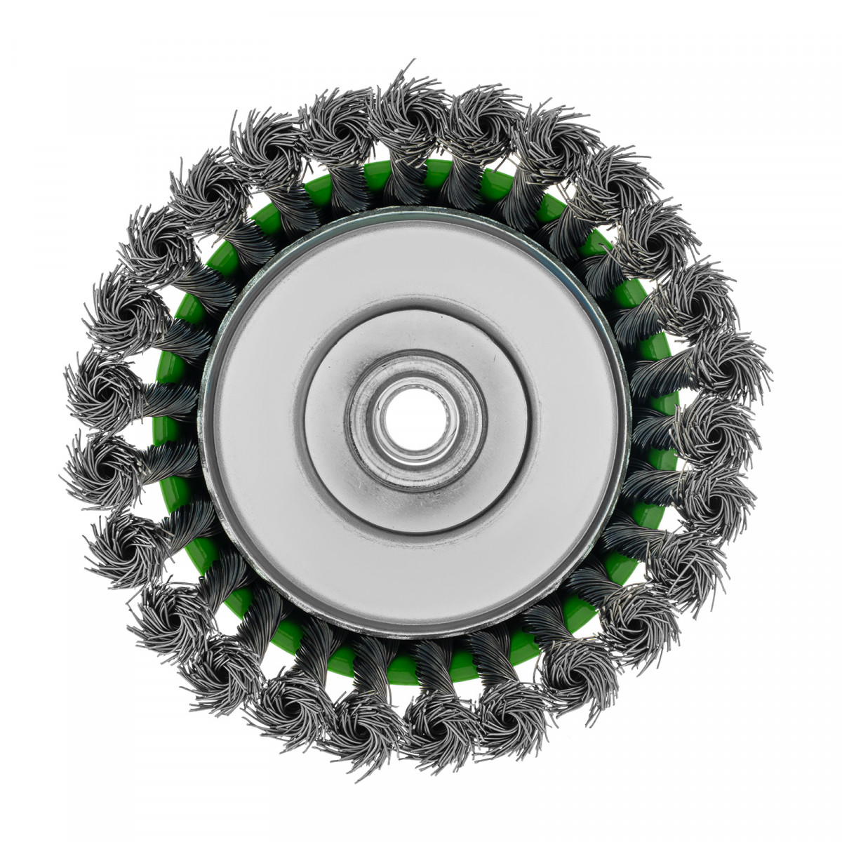 • Прочность и долговечность — щетина из крученой стальной проволоки выдерживает значительные нагрузки.