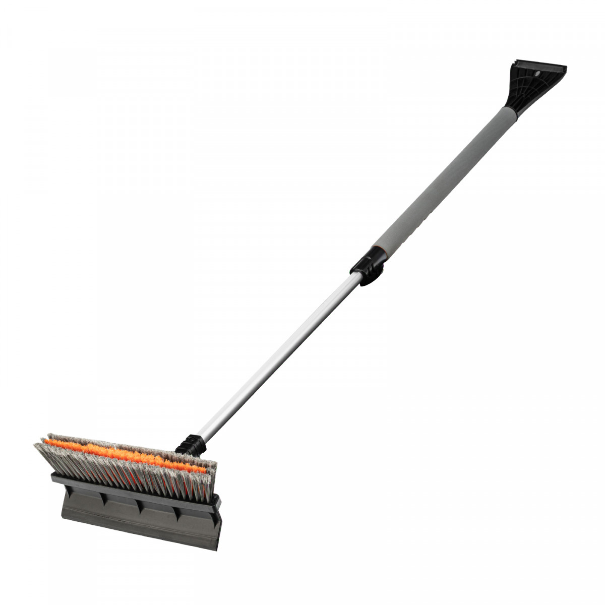 Телескопическая щетка-сметка для снега со скребком Stels 55301, длину которой можно увеличить с 900 до 1300 мм, помогает быстро очистить автомобиль от снега и наледи. Раздвижная рукоятка облегчает чистку капота и крыши. Щетка будет полезна автолюбителям.