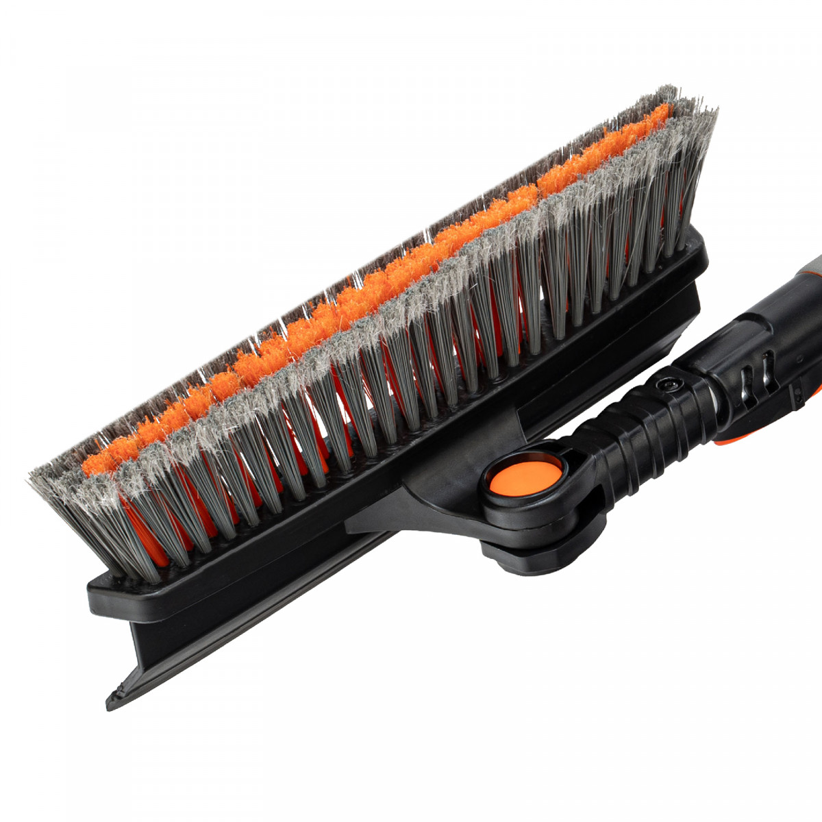 - Щетка-скребок имеет плотную щетину, распушенную на концах, поэтому эффективно убирает слой снега, не царапая поверхность кузова.