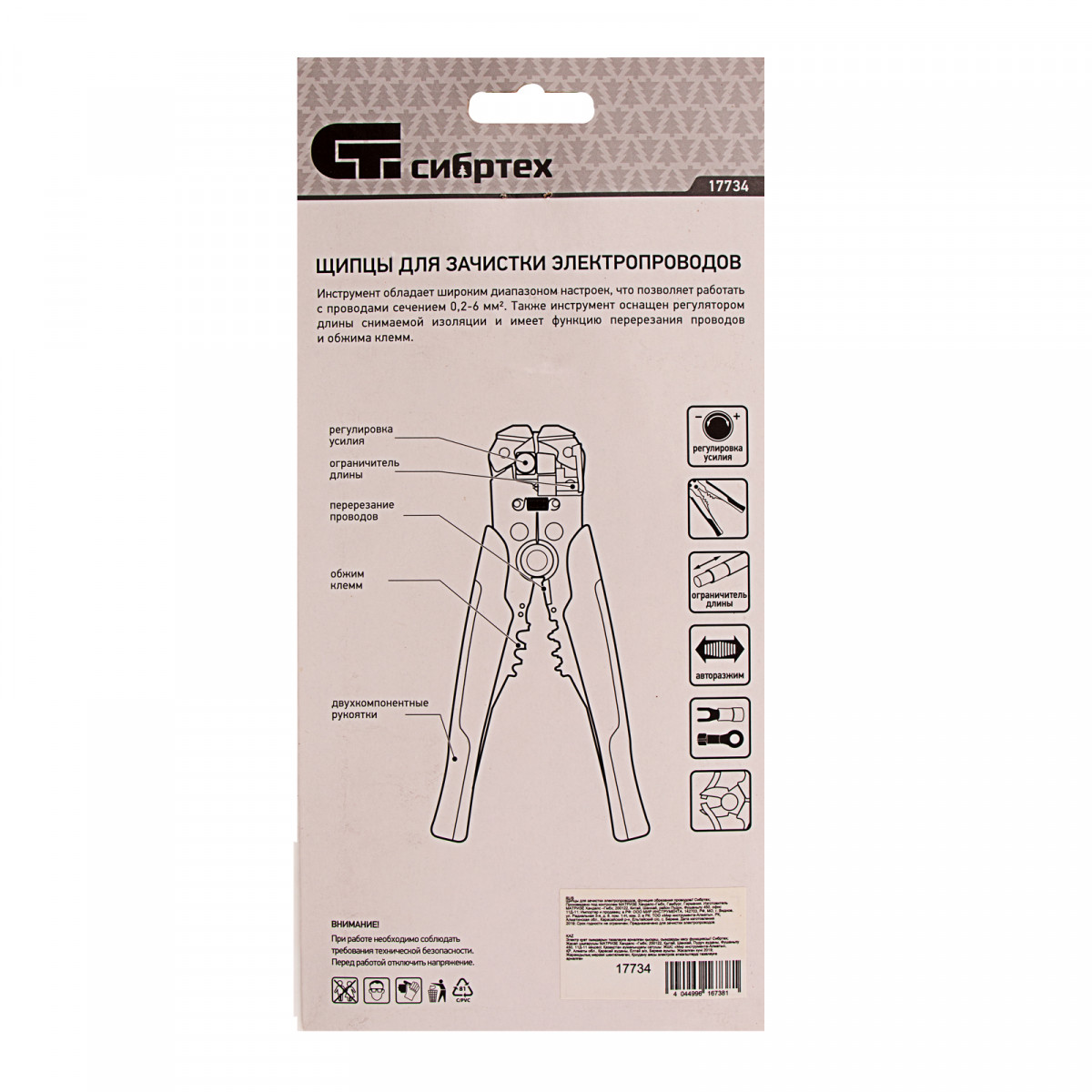 Щипцы для зачистки электропроводов, функция обрезания проводов Сибртех
