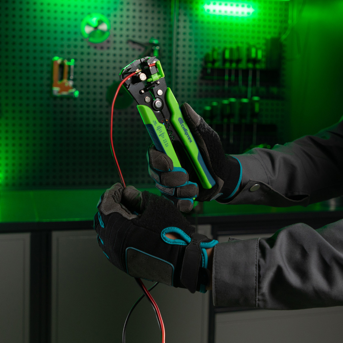 • Встроенный ограничитель позволяет регулировать длину зачищаемых электропроводов.