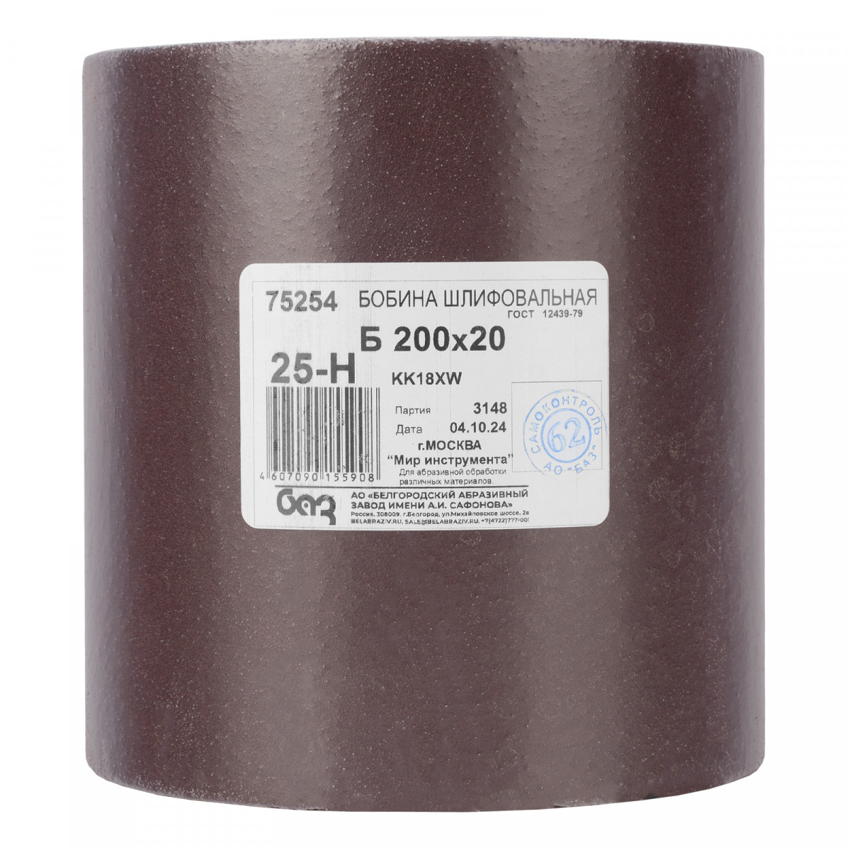 Шкурка на тканевой основе, KK18X W, зернистость 25Н(P 60) бобина 200мм х 20 м, водостойкая, "БАЗ"