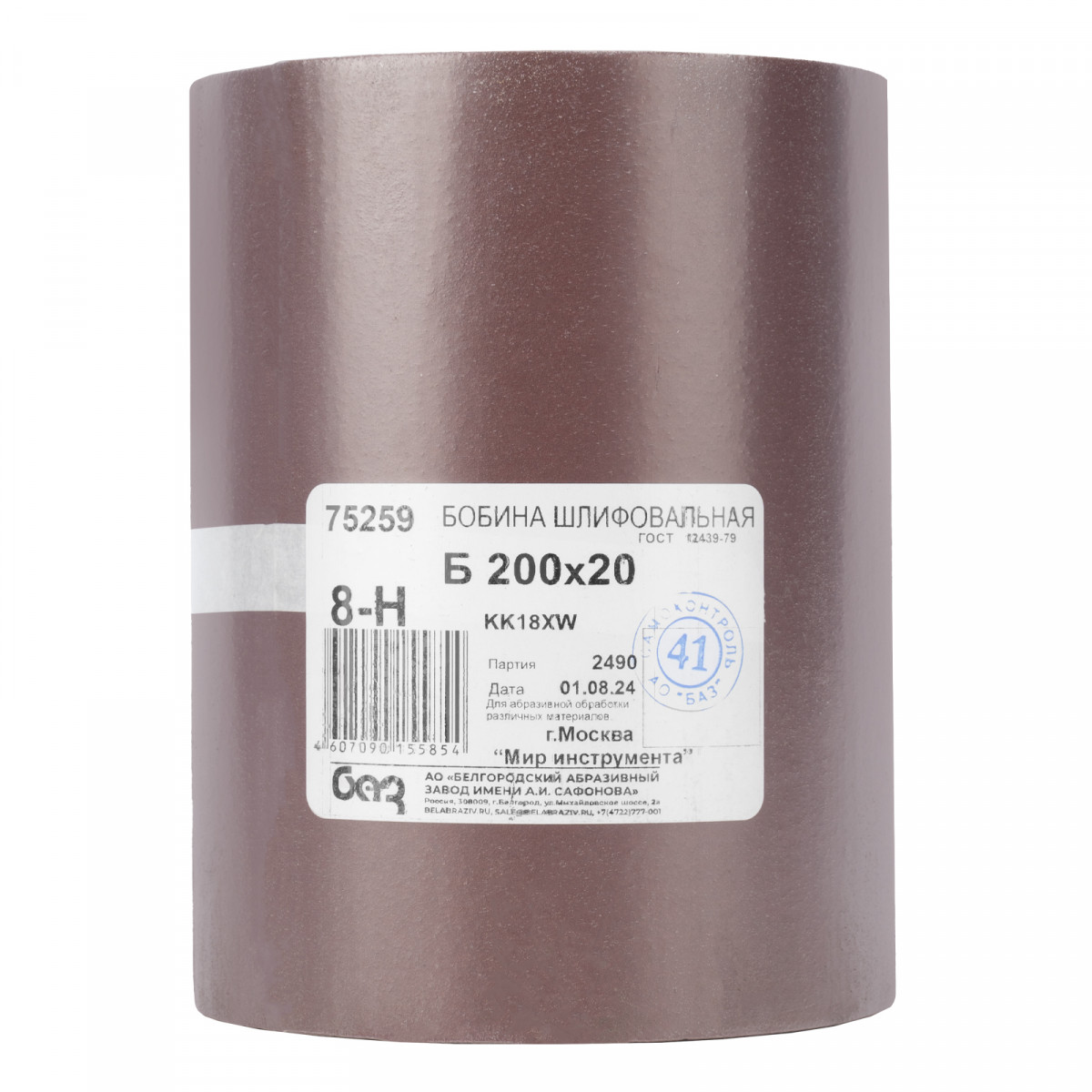 Шкурка на тканевой основе, KK18X W, зернистость 8Н(P 150) бобина 200 мм х 20 м, водостойкая, "БАЗ"
