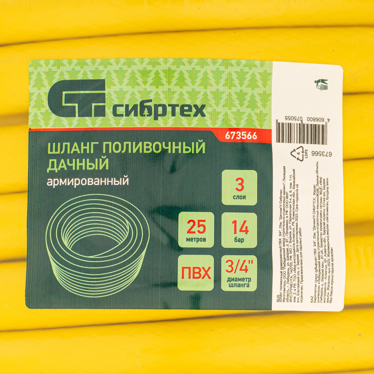 Армированный поливочный шланг из ПВХ Сибртех «Дачник» 673566 длиной 25 м и диаметром 3/4" используется садоводами для орошения участка. Подходит для ежедневного применения, оптимален для участков средней площади. Совместим с любыми системами полива Palisad. Использование шланга позволяет сэкономить время пользователя и повышает комфорт работы в саду.