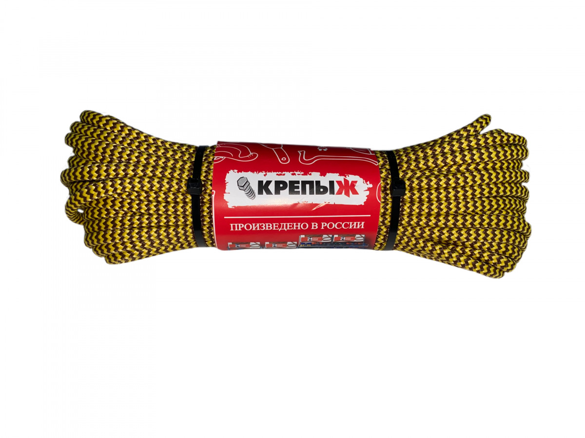 Шнур полипропиленовый плетеный 12 мм 16 пр. 10 м с сердечником КРЕПЫЖ