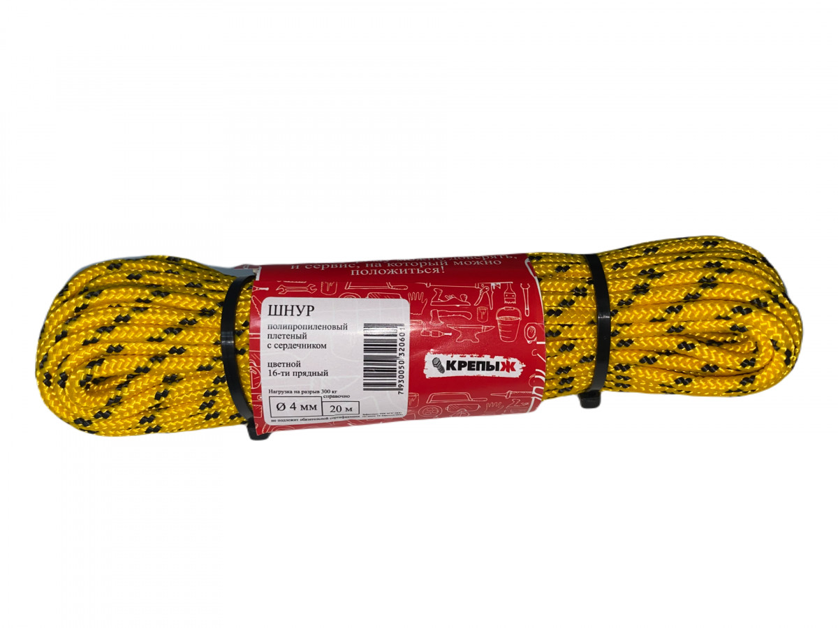 Шнур полипропиленовый плетеный 4 мм 16 пр. 20 м КРЕПЫЖ