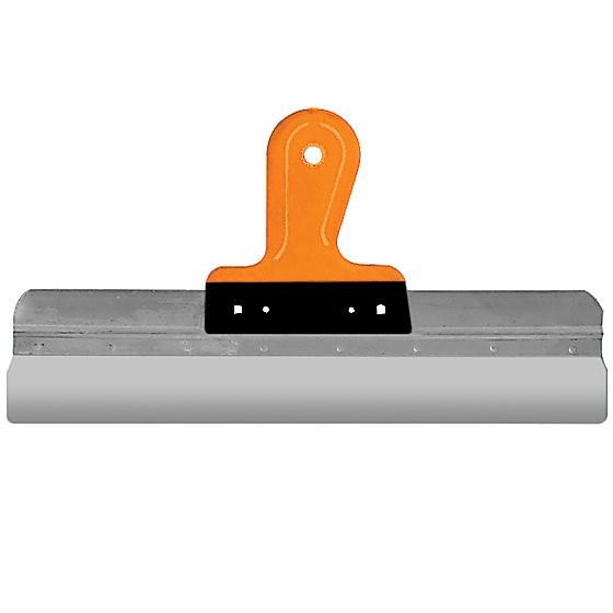 Фасадный шпатель из нержавеющей стали для штукатурных работ. Алюминиевая основа, эргономичная 2-К ручка. Материал: нержавеющая сталь, прорезиненная ручка.