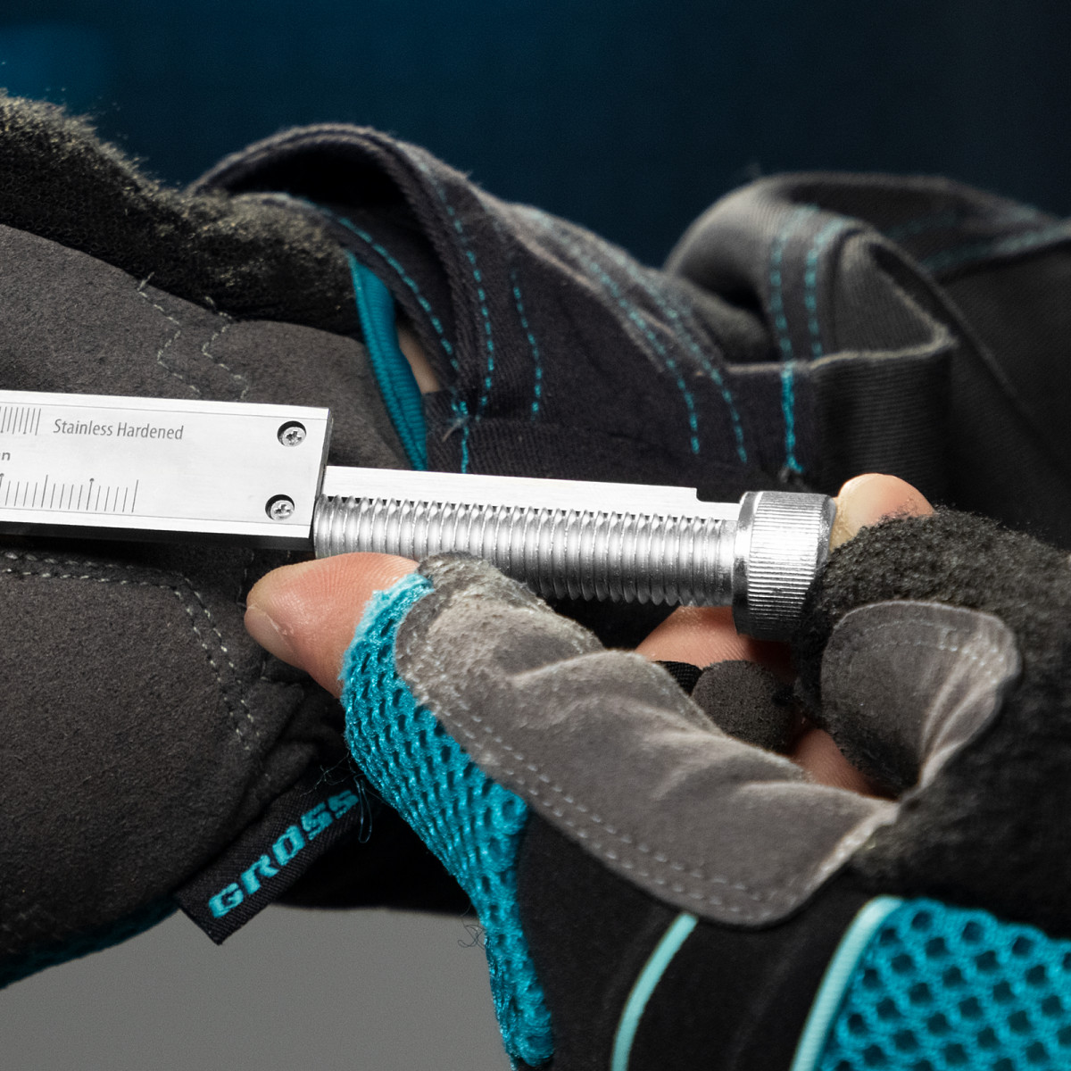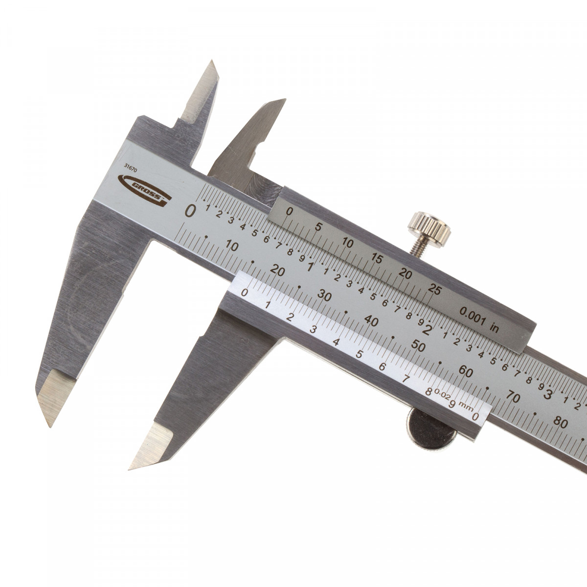 Штангенциркуль Gross 31670 из нержавеющей стали, с глубиномером, предназначен для измерения внутренних и наружных размеров деталей и заготовок в диапазоне 0-150 мм. Значение отсчета по нониусу составляет 0,02 мм. Погрешность находится в пределах ±0,02 мм при измерении до 100 мм, и ±0,03 мм — свыше 100 мм. Инструмент имеет губки двух видов для облегчения замеров внутри и снаружи предметов. Штангенциркуль будет полезен на производственном предприятии, в слесарной и столярной мастерской, автосервисе, а также пригодится в быту.