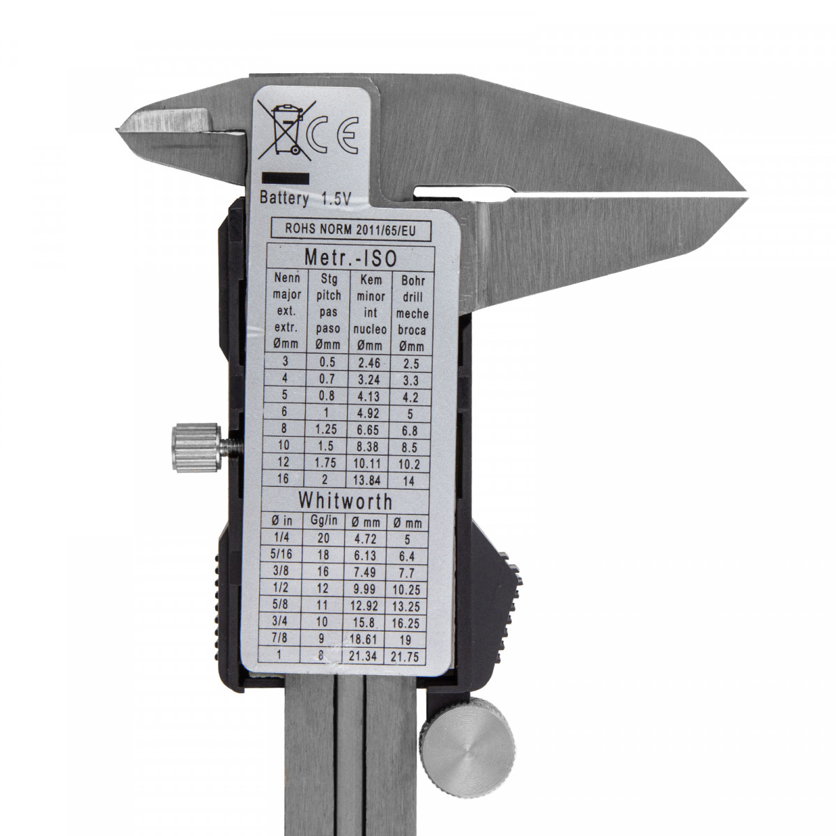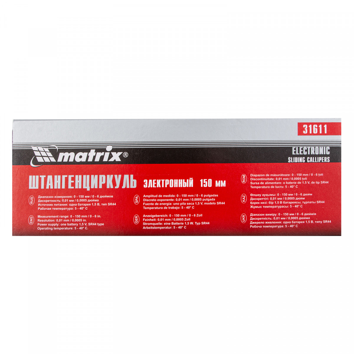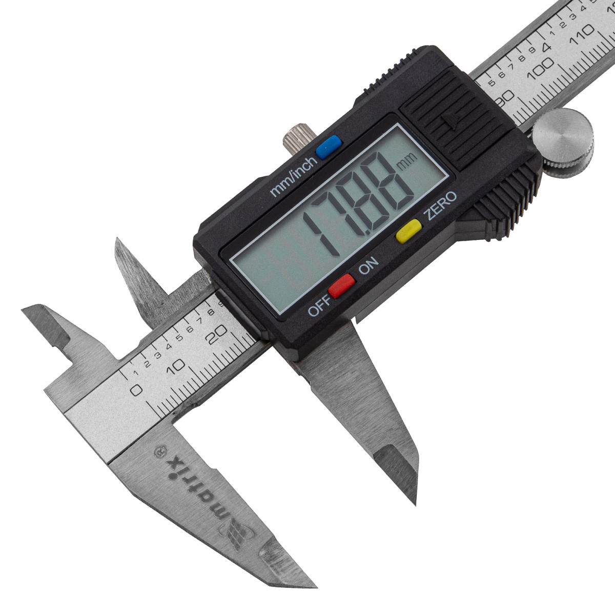 Электронный штангенциркуль Matrix 31611 со шкалой 150 мм предназначен для определения внутренних и наружных размеров различных предметов, а также глубин отверстий и канавок — для этого предусмотрен глубиномер. Цифровой инструмент позволяет проводить точные замеры, т.к. его погрешность составляет ±0,02 мм при измерении размеров до 100 мм, и ±0,03 мм — свыше 100 мм. Результаты отображаются на жидкокристаллическом дисплее, поэтому считывание показаний происходит легко и быстро. Штангенциркуль пригодится на производстве, в слесарной и столярной мастерской, а также дома или в гараже.