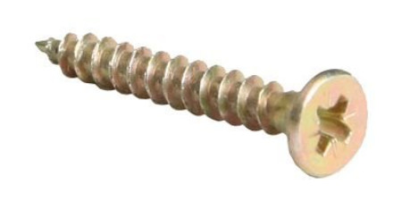 Шуруп жёлтый цинк , представляет собой шуруп с острым наконечником и потайной головкой с крестообразным шлицем. Материал, из которого изготовлен саморез, - покрытая цинком сталь. Производятся желтой или белой расцветки.Служит для работы с неплотными строительными материалами, например, древесиной. Обеспечивает надежное соединение элементов между собой. Потайная головка полностью прячется в поверхности материала, делая ее ровной.Применяются для крепежа деревянных, гипсокартонных плит, тонкого листового материала. Могут быть использованы для монтажа в пустотелые и полнотелые основания при помощи дюбелей или сквозного крепления конструкций к деревянным основаниям.