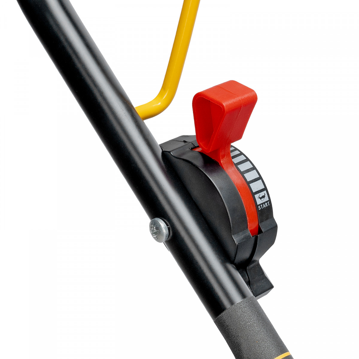 • Оптимальный темп работы — регулировка оборотов двигателя позволяет замедлять или увеличивать скорость обработки территории в зависимости от поставленных задач.