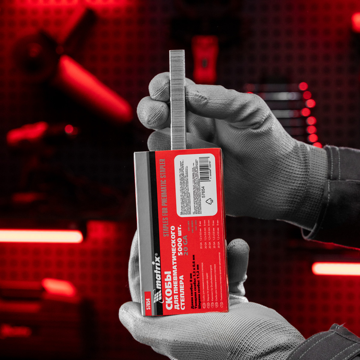 Скобы Matrix 57654 типа 20GA, 5000 шт. в упаковке, загружаются в скобоприемник пневматического степлера, совместимого с крепежами размером 8 х 1,2 х 0,6 мм и шириной 11,2 мм. Подходят для крепления вагонки и сайдинга, упаковки товаров, перетяжки мебели, фиксации плинтусов и молдингов на деревянных поверхностях.