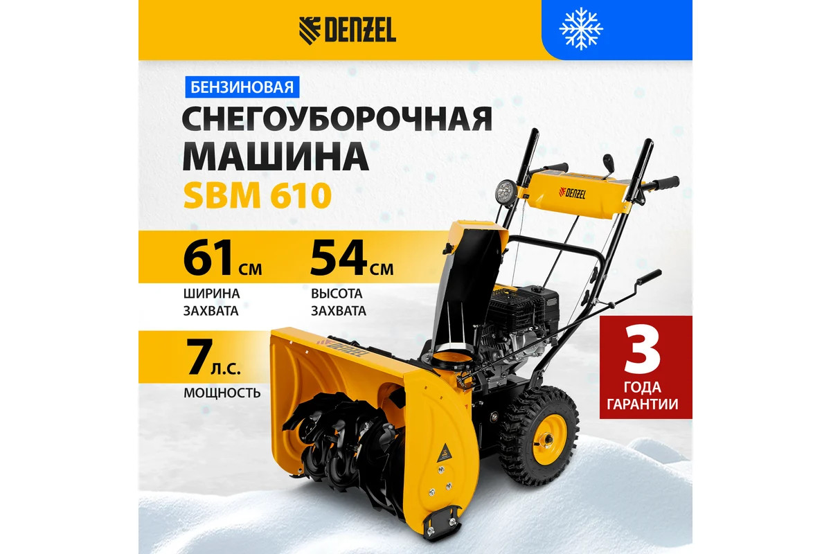 Бензиновая снегоуборочная машина Denzel SBM 610 97653 - оптимальный выбор для коммунальных служб и организаций. Предназначена для уборки территорий загородных домов, коттеджей, подъездных дорог и улиц СНТ, парковок и городских дворовых территорий. Ресурсный двигатель объемом 212 куб.см с высоким крутящим моментом, кожух шнека шириной 610 мм и высотой захвата 540 мм обеспечивают эффективную уборку больших сугробов с ледяной коркой. Снегоуборщик относится к самоходному типу с двухступенчатой системой забора снега. Яркая LED фара облегчает работу в темное время суток. Благодаря шинам с глубоким протектором исключается пробуксовка на обледенелой дороге.