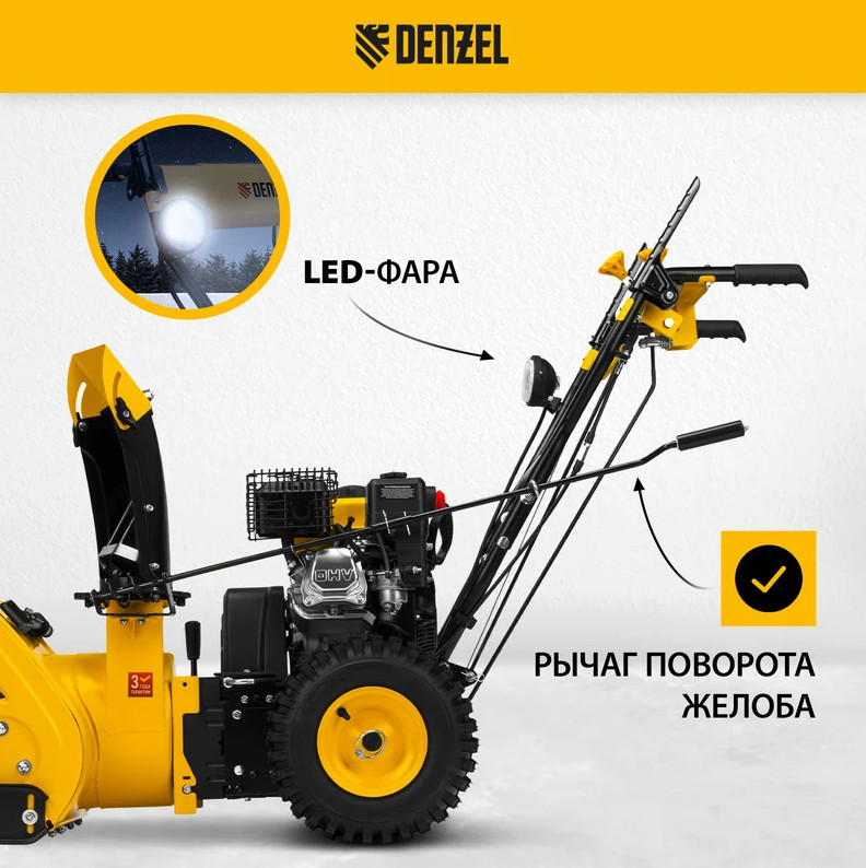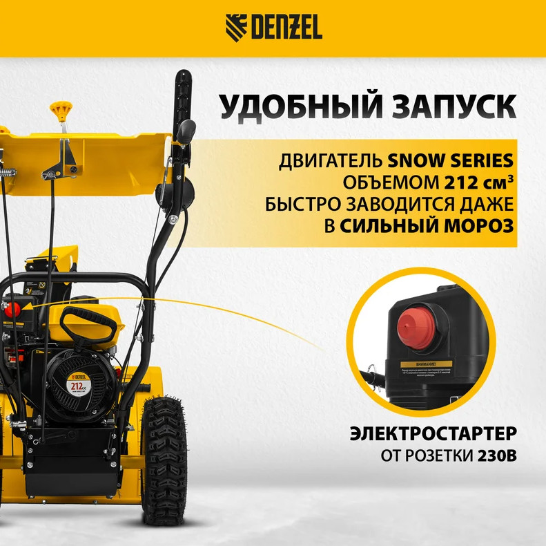 • Срезные болты в комплекте — c каждым двухступенчатым снегоуборщиком Denzel клиент получает 10 запасных срезных болтов на шнек, чтобы обеспечить бесперебойную работу техники