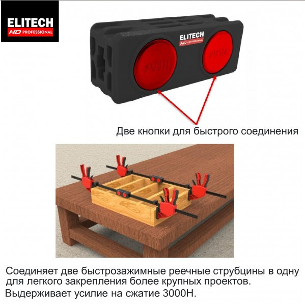 Выдерживаемое усилие до 300 кг обеспечивает надежное соединение струбцин ELITECH.