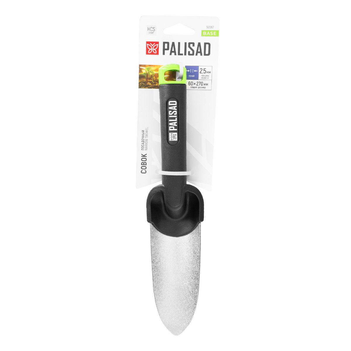 Совок посадочный узкий, 60х270 мм, стальной, полипропиленовая рукоятка, BASE Palisad