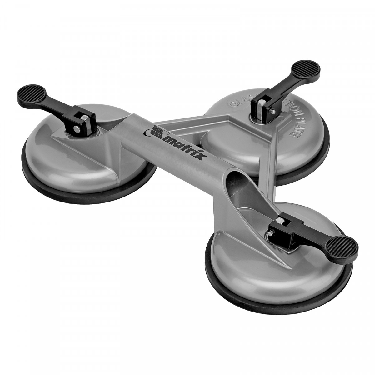Алюминиевый тройной стеклодомкрат Matrix 875255 позволяет поднимать, переносить и устанавливать стекла, зеркала, плитку, листовой металл и другие гладкие материалы. Имеет три вакуумные присоски, которые бережно и надежно фиксируются на поверхности при помощи зажимов. Стеклодомкрат позволяет длительное время удерживать груз весом до 120 кг. Будет полезен во время строительства, ремонта, а также пригодится в быту.