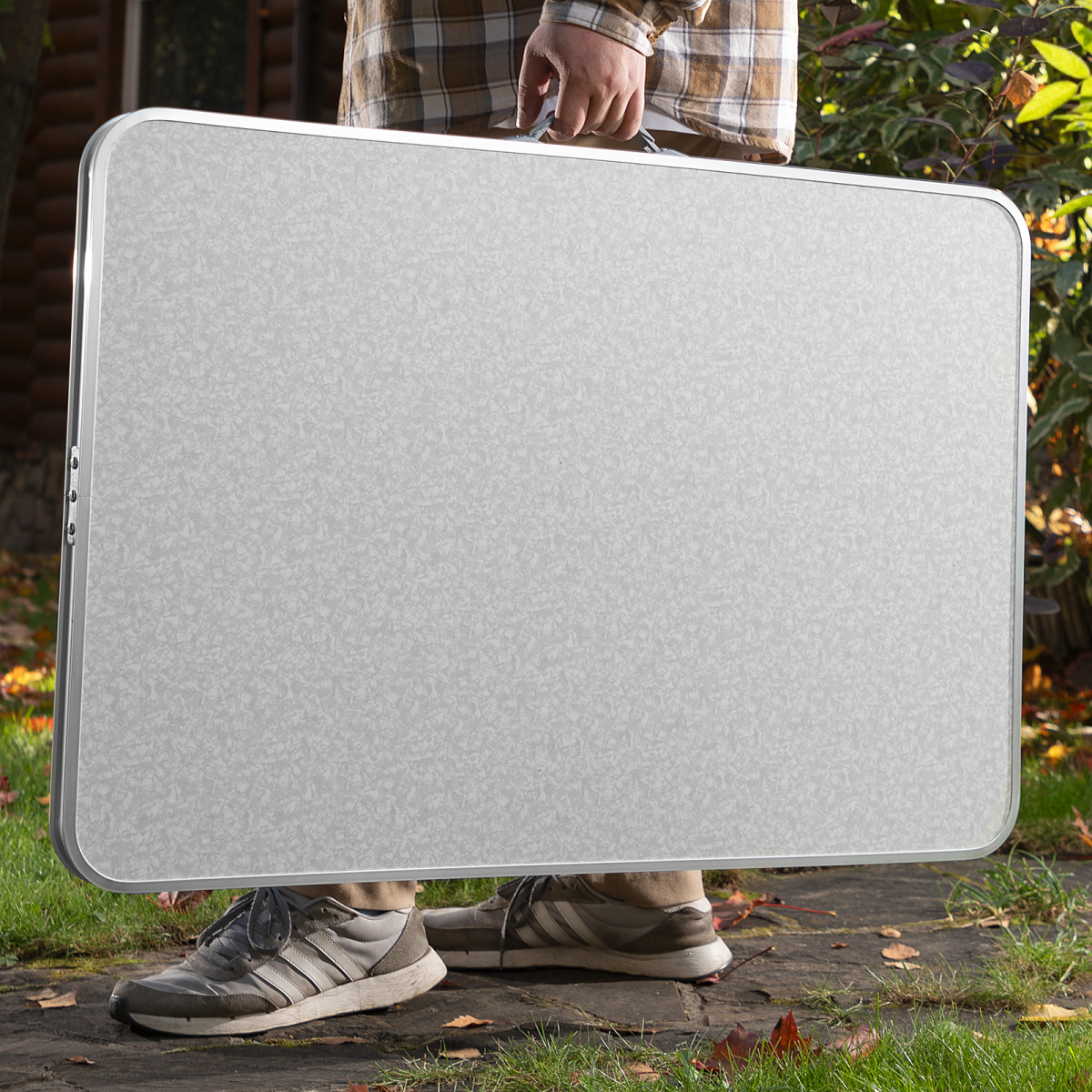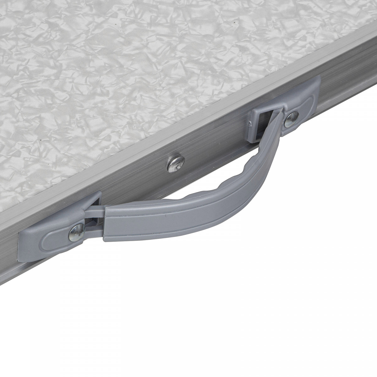 - Комфорт при транспортировке — на боковой стороне столешницы имеется ручка, за которую стол удобно перемещать.
