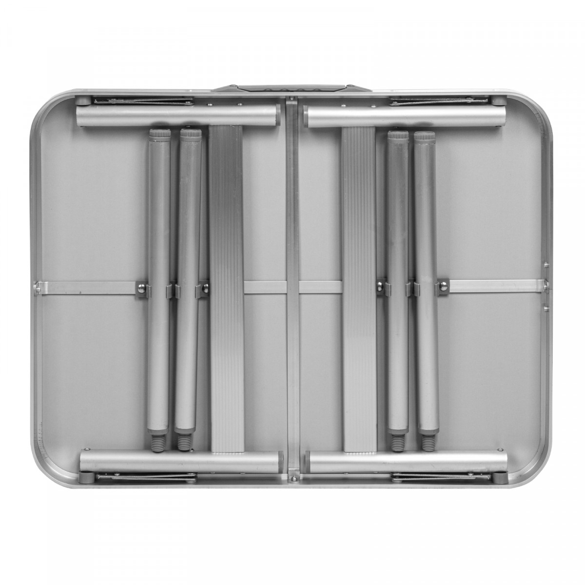 Складной стол Palisad Camping 69582 размером 600 х 450 х 250 / 590 мм, со столешницей из МДФ, позволяет организовать прием пищи для нескольких человек. Пригодится во время отдыха на дачном участке, на пикнике, а также послужит дополнительным столом в случае визита гостей. За счет алюминиевых ножек имеет облегченную конструкцию и весит всего 2,52 кг, поэтому удобен в транспортировке. Благодаря составным ножкам стол можно зафиксировать на высоте 25 или 59 см.