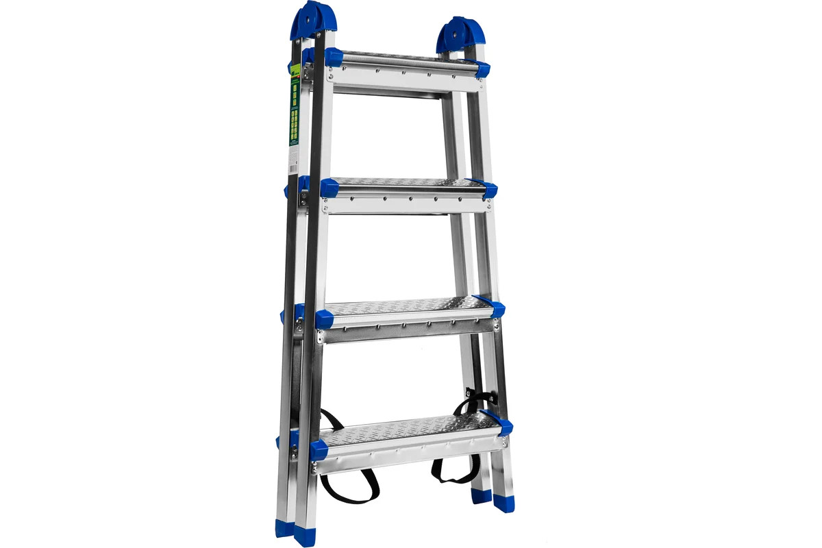 Стремянка двухсторонняя 4 ст., сталь профиль, стальные ступени, Россия// Сибртех