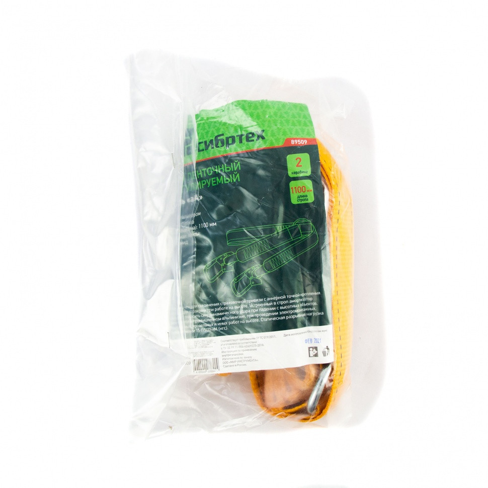 Ленточный нерегулируемый строп Сибртех 89509, модель «аА» с амортизатором, предназначен для соединения удерживающей (страховочной) привязи с анкерной точкой крепления. Применятся в ходе строительных, монтажных кровельных и других операций, когда необходимо обеспечить безопасность работника. Применение без страховочно-удерживающей привязи недопустимо.
