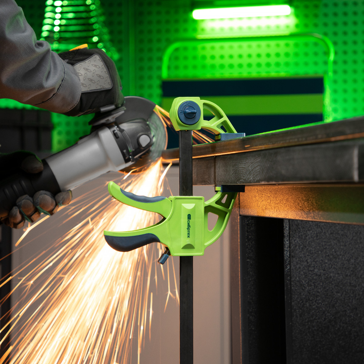 • Дополнительные возможности — опорную губку можно переставить на другой конец штанги, превратив струбцину в распорный инструмент.
