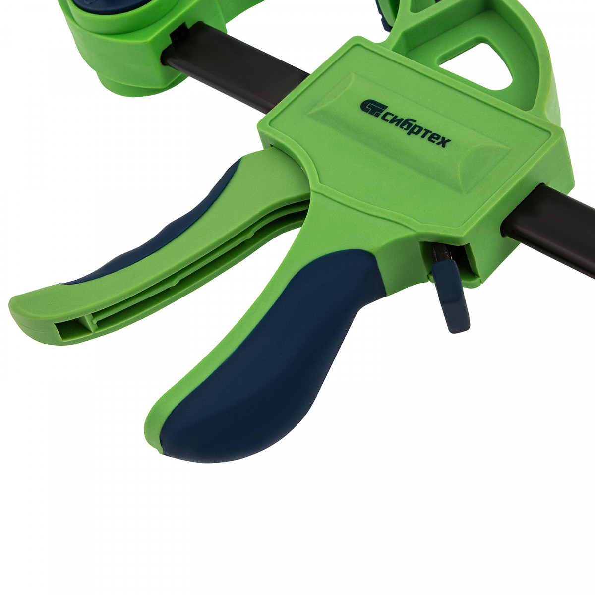F-образная быстрозажимная струбцина Сибртех 20566 длиной 660 мм, с шириной и глубиной зажима 450 и 70 мм соответственно, в пластиковом корпусе, с фиксатором и двухкомпонентной рукояткой, позволяет зажимать заготовки для их дальнейшей обработки или сборки. Помогает решать множество задач благодаря оптимальной глубине зажима. Пластинчатый механизм пошагово перемещает подвижную губку вдоль направляющей до достижения максимально плотного захвата детали. Фиксатор препятствует движению губки в обратную сторону. Струбцина пригодится в столярной мастерской, а также будет полезна в быту.