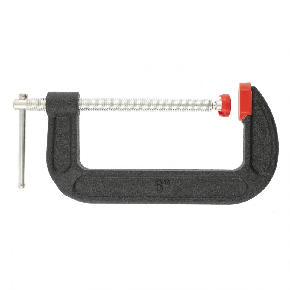 G-образная струбцина Matrix 20604 с максимальной шириной зажима 100 мм используется для фиксации заготовок или закрепления их на верстаке или станке. Позволяет склеивать детали, а также сверлить их, шлифовать, опиливать и проводить другие работы. Подходит для использования при сварке. Рама изготовлена из высокопрочного чугуна, поэтому выдерживает значительные усилия. Винт с трапециевидной резьбой обеспечивает надежную фиксацию предметов. Струбцина применяется в слесарном и столярном деле, а также в домашнем хозяйстве.