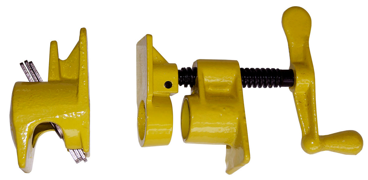 Универсальная струбцина позволяет фиксировать детали практически любого размера в пределах длины трубы. Механизм быстрой фиксации очень удобен и надежен в эксплуатации.