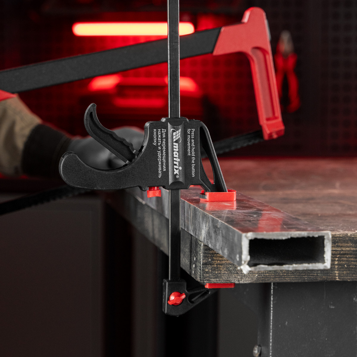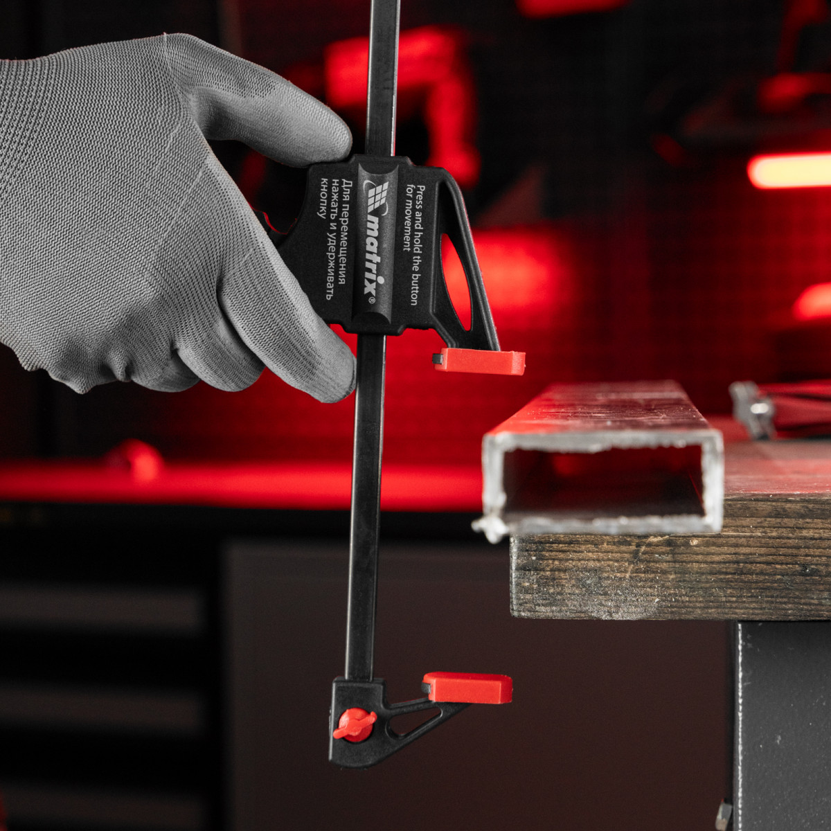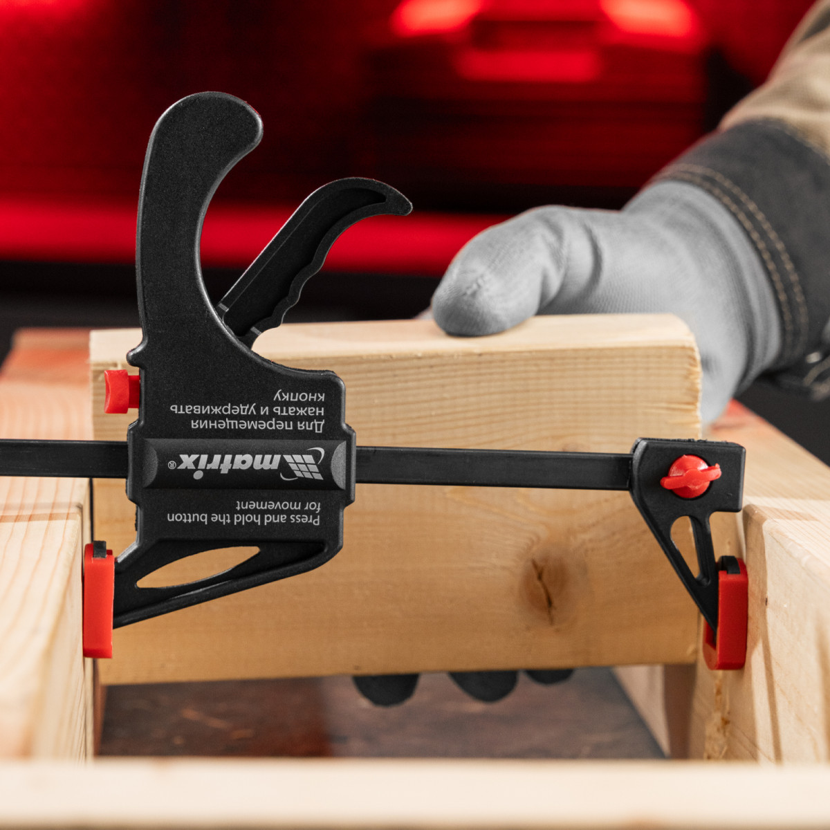 Универсальная F-образная быстрозажимная струбцина Matrix 20574 размером 450 х 565 х 45 мм, в пластиковом корпусе, используется в столярном деле. Позволяет быстро и надежно фиксировать заготовки с целью для последующего склеивания, сверления, шлифовки, пиления и другой обработки. Компактный размер упрощает работу с инструментом.