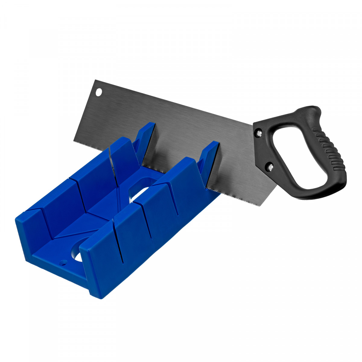 Стусло пластиковое, синее, 4 угла для запила, пила 350 мм Сибртех