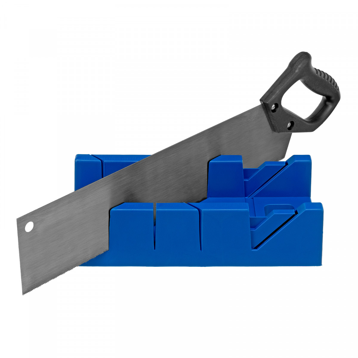 Стусло пластиковое, синее, 4 угла для запила, пила 450 мм Сибртех