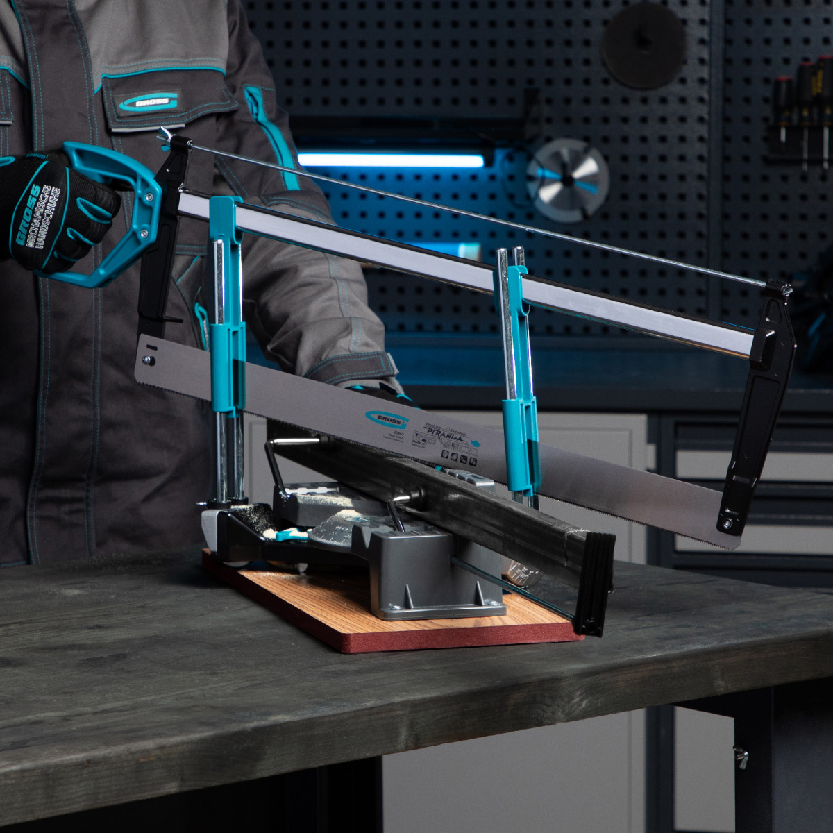 Двухплоскостное стусло Gross обеспечивает точность распила благодаря упору-ограничителю.