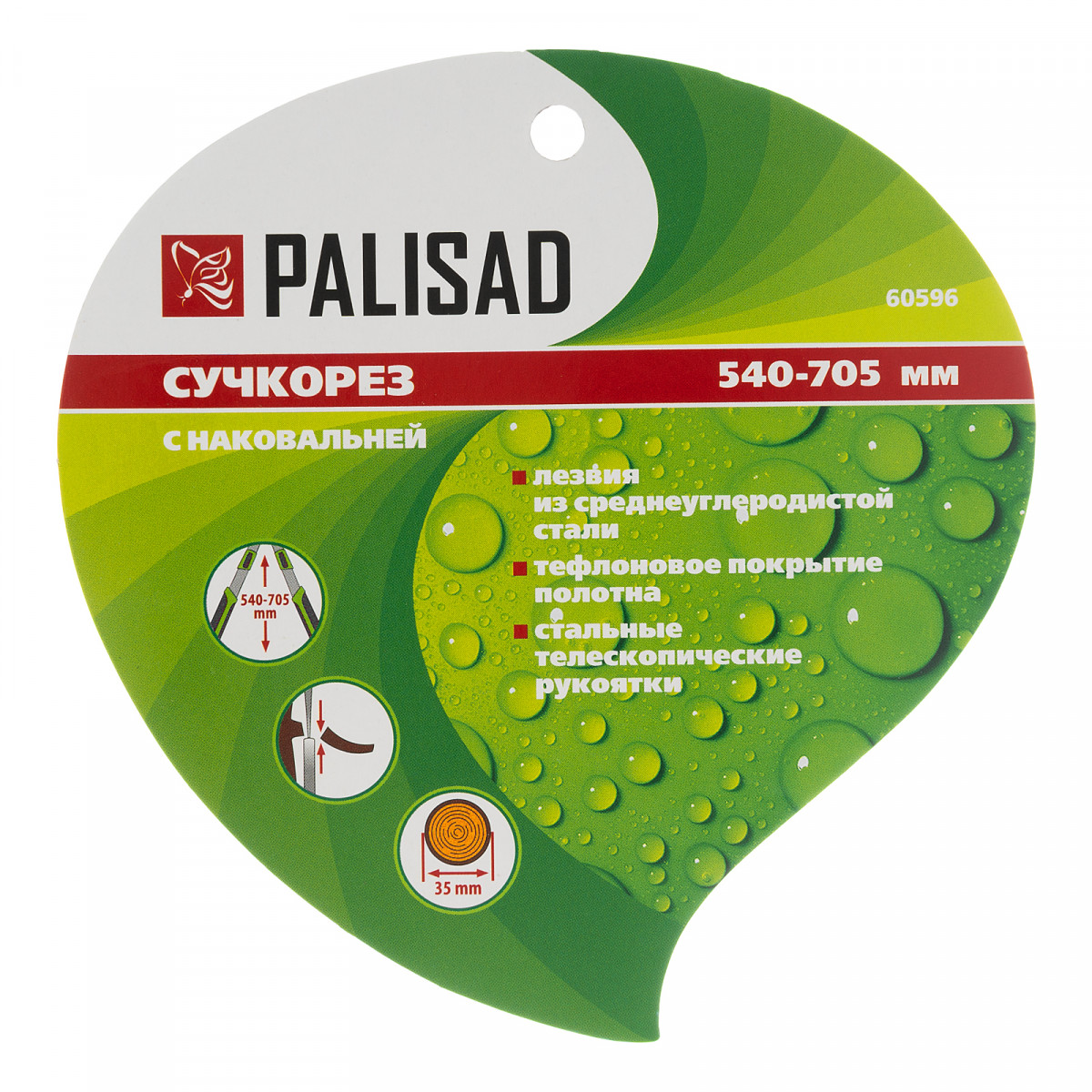 Сучкорез с наковальней Palisad 60596 имеет телескопические стальные обрезиненные рукоятки, способные увеличить длину инструмента с 540 до 705 мм. Используется для работы двумя руками и позволяет срезать засохшие и увядшие ветки толщиной до 35 мм, расположенные в труднодоступных местах. Режущее лезвие с тефлоновым покрытием испытывает пониженное трение, поэтому успешно справляется с жесткой древесиной. Кроме того, оно устойчиво к образованию коррозии. Инструмент будет полезен для ухода за дачным участком.